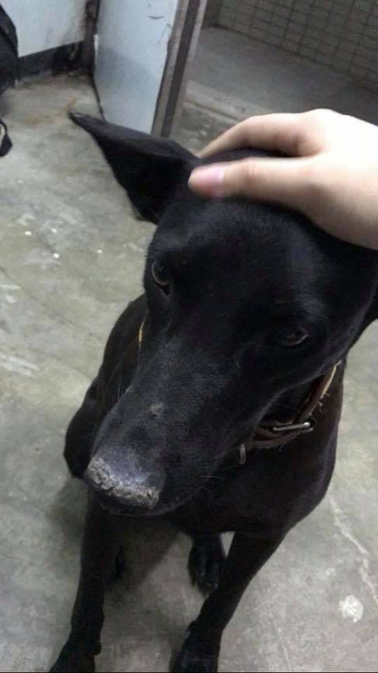 2022/10/14 頸旁皮膚內有一移動肉瘤(復發),經醫師將其腫瘤開個小洞灼燒讓其不給畢訸,以利體液流出,帶其腫瘤空洞縮小