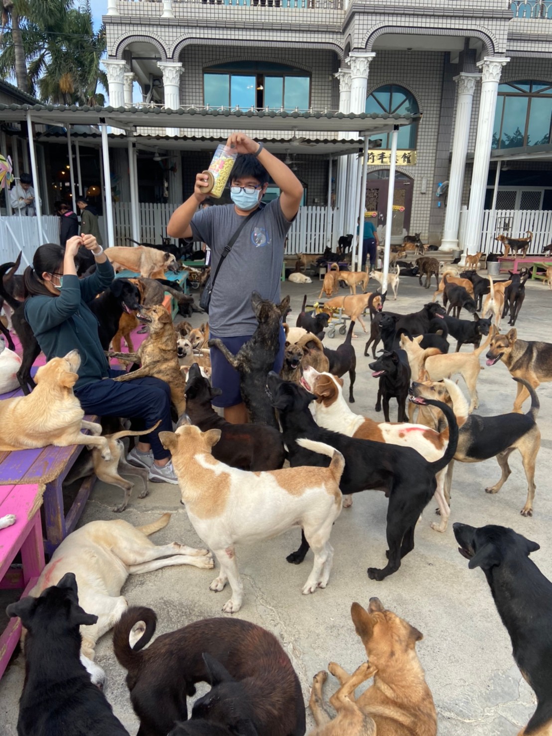 台南徐文良護生狗園參訪,義工服務,環境清潔整理及與狗園毛孩(貓與狗)互動。